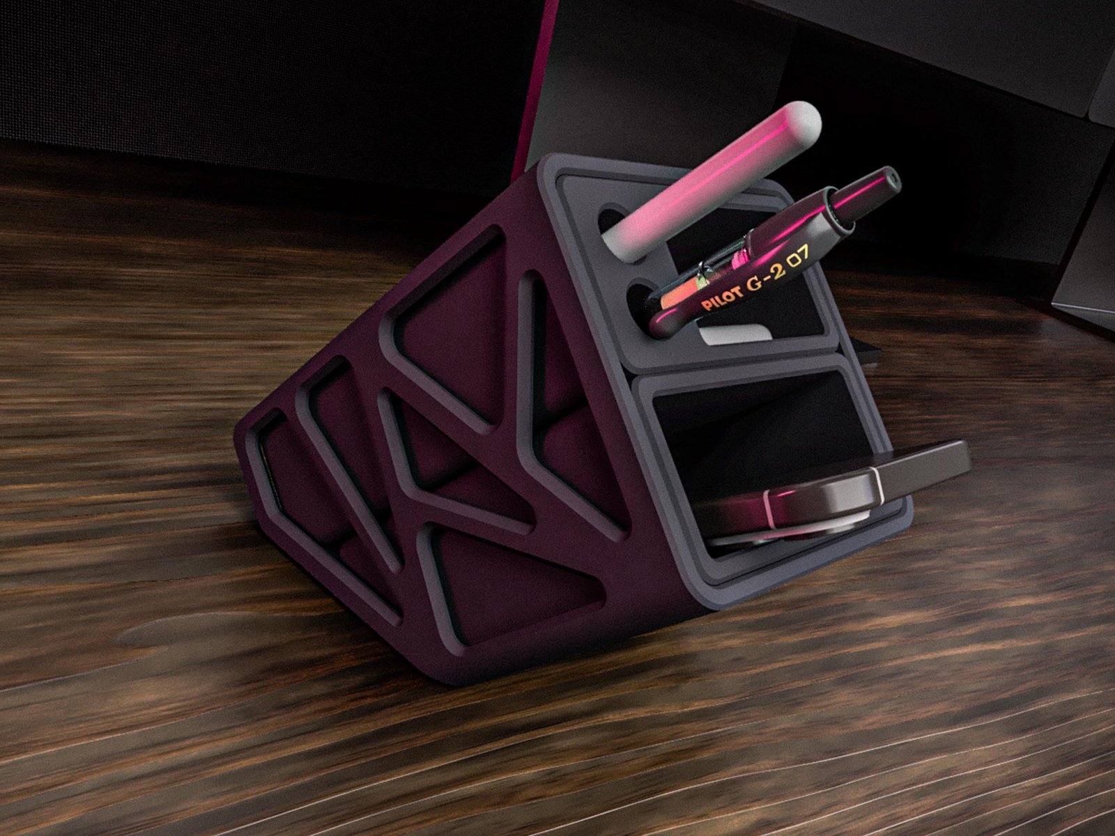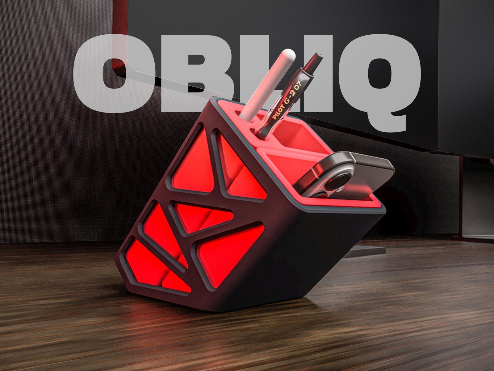 Tired of a cluttered desk? Bring order and style to your workspace with the OBLIQ desktop organizer. Meticulously designed and 3D printed, this unique organizer is not just a storage solution but a statement piece.